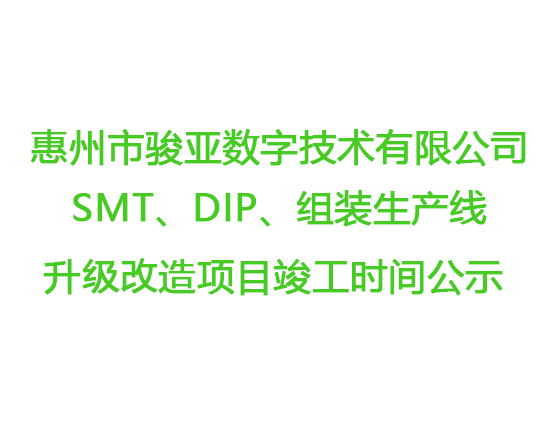 惠州市駿亞數(shù)字技術(shù)有限公司SMT、DIP、組裝生產(chǎn)線升級(jí)改造項(xiàng)目竣工時(shí)間公示